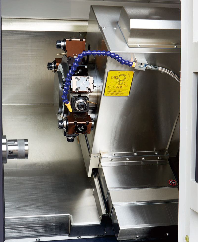 इसके अलावा, उपकरण में ये व्यावहारिक विशेषताएं भी हैं: 0° पावर हेड 8000 RPM की स्थिर संचालन प्राप्त कर सकता है, 90° पावर हेड 6500 RPM की रेटेड कार्य गति प्राप्त कर सकता है; उपकरण धारक गियरलेस मॉड्यूल ट्रांसमिशन डिज़ाइन को अपनाता है, जो जड़ से गर्मी स्रोत के प्रभाव को समाप्त करता है, जो प्रभावी ढंग से मशीनिंग सटीकता की गारंटी दे सकता है; मिलिंग और टर्निंग फ़ंक्शन एकीकृत हैं, जो स्टेनलेस स्टील, टाइटेनियम मिश्र धातु और कार्बन स्टील जैसी जटिल सामग्रियों की मशीनिंग आवश्यकताओं को आसानी से पूरा कर सकते हैं; चिप हटाने की प्रणाली साइड + बैक इंटीग्रेटेड डिज़ाइन, लचीले इंस्टॉलेशन मोड को अपनाती है, जिसे वास्तविक कामकाजी परिस्थितियों के अनुसार मनमाने ढंग से चुना जा सकता है।